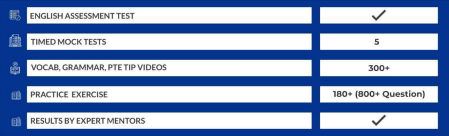 Our Mock Tests package comprises of preparatory video lessons for Grammar, Vocabulary and PTE foundation building, along with timed Mock Tests placed on Al powered simulated test engine, to giveyour students the look and feel of the real PTE test. Moreover, the content has been created by expert PTE trainers, with experience of training more than 10,000 students till date.